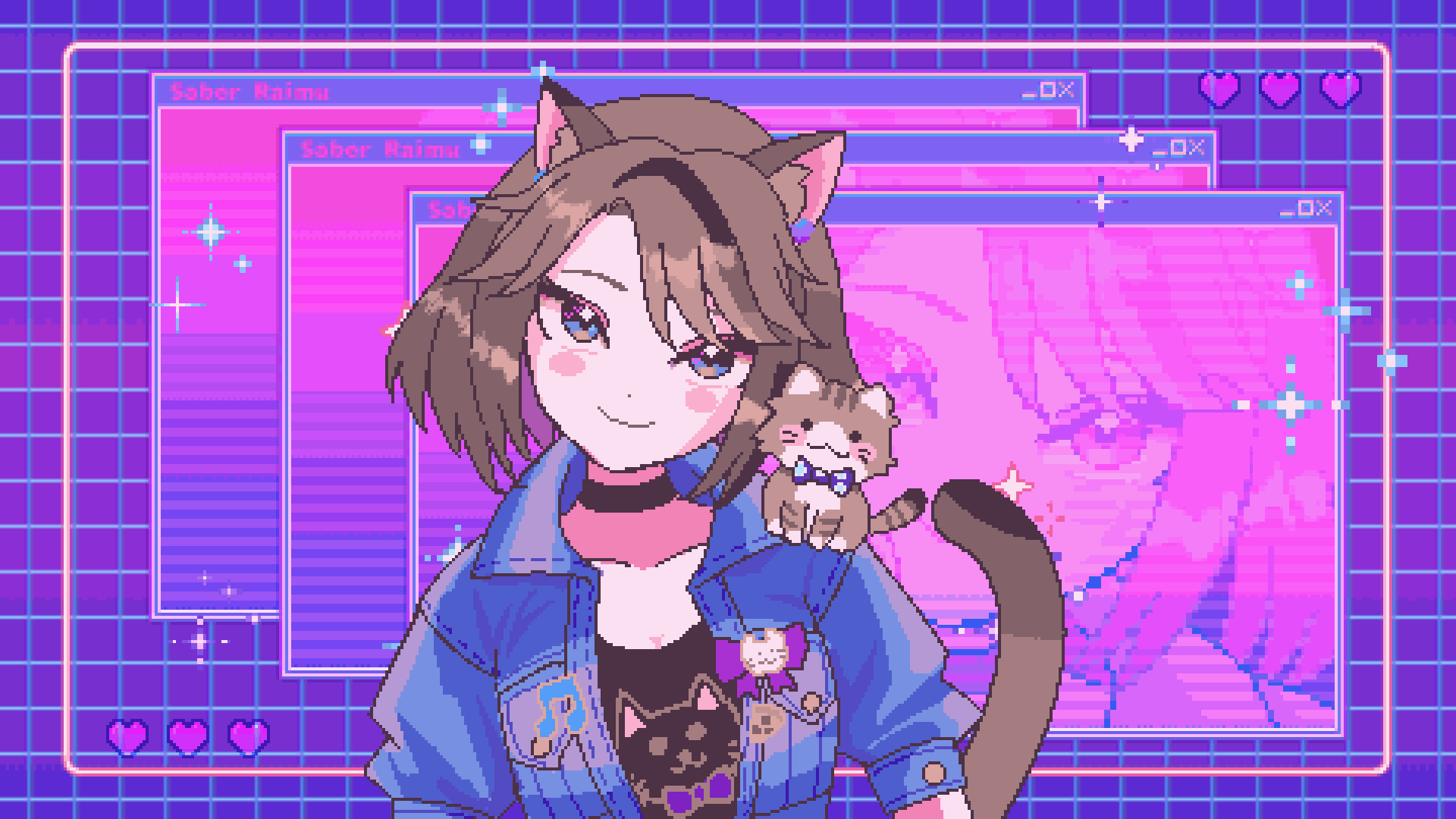 Meowdy! I'm Saber Raimu, a scaredy cat pizza cat! I'm an elderly cat girl on life 7 out of 9 who loves city pop, visual kei, Japanese fashion, retro anime and games, and art!I grew up playing games with my many younger siblings and now that I'm older I aim to recreate that feeling through my live streams!I stream most nights on Twitch from 8:00pm EST to Midnight. I'm usually playing retro games, cozy games, horror games, and sometimes some survival games such as Vintage Story and Project Zomboid! I love JRPGs and also enjoy rhythm games like Muse Dash and am level 10k+ in the game as of writing this paragraph.Stop on in and say Meowdy and join the community!
